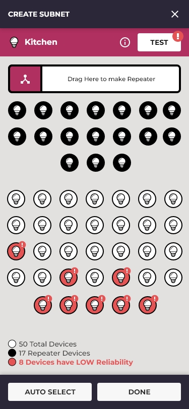 One of the most technically complex challenges: how do you expose BLE mesh subnet configuration, normally a networking task, to homeowners with no knowledge of BLE topology?
