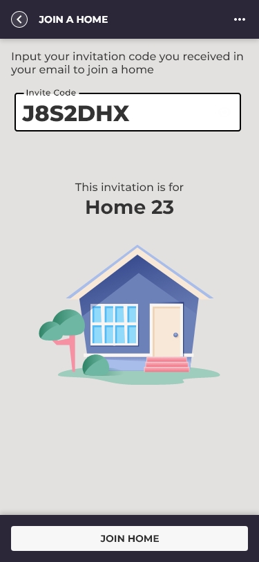 (Small/Medium/Large) → home configuration → invite code to join