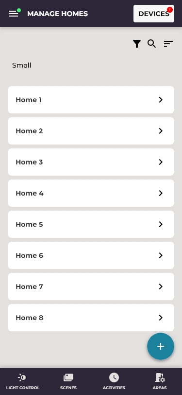 The persistent bottom navigation, Light Control, Scenes, Activities, Areas, was visible at all times. No back stacks, no hamburger menus. Consumer research showed that smart home apps are disproportionately used one-handed, in low-light environments, often mid-task. Navigation needed to be positionally predictable and always-visible.